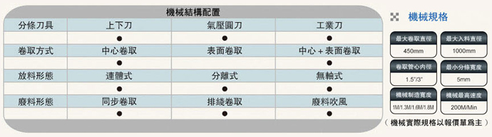 各種紙和、薄膜、膠帶等材料之分切。