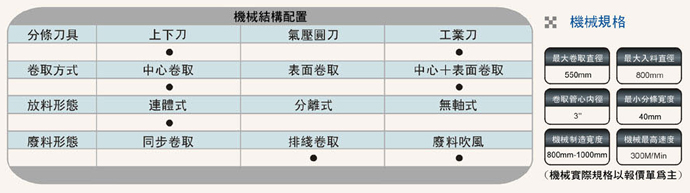 成品卷取方式:可配備板條式氣壓軸及滑差式卷取軸,適用更廣范圍,換軸方式經(jīng)特殊設(shè)計(jì),可以隨時(shí)更換。